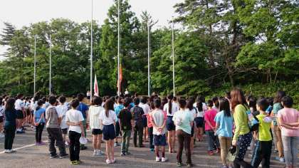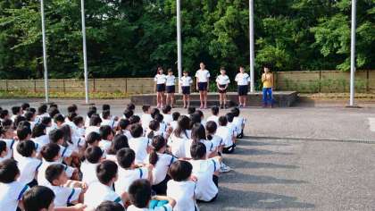 やや自信なさげなラジオ体操(笑),学校紹介と会は進んでいます。