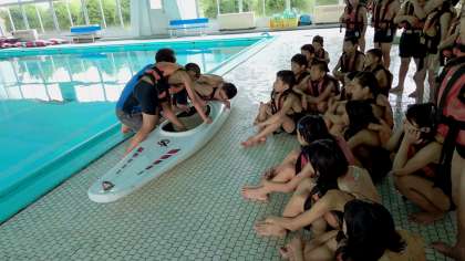 乗り降りの練習,パドルの扱い方を教えて頂いた後,
