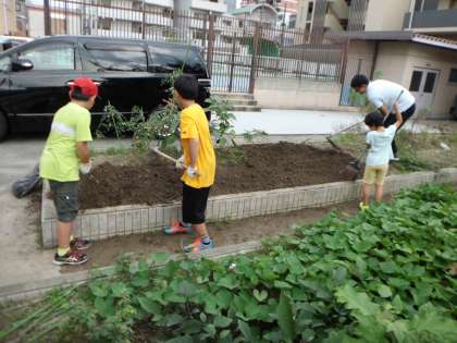 先週耕した畑を昨日も根気よく,汗を光らせながら耕し,更にフカフカにしました。