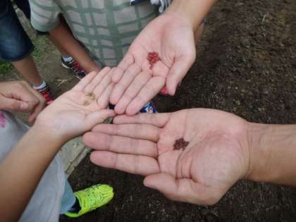 今日は,その畑に種まきをしました。