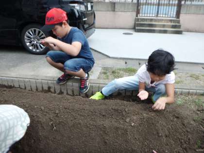 小さな種を慎重につまみ,優しくまいている姿から野菜を大切に育てようとする気持ちや,野菜が大きく育つことへの期待を感じました。