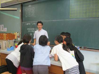 竝木先生のまわりに集まった子どもたちは