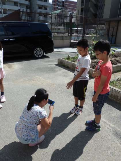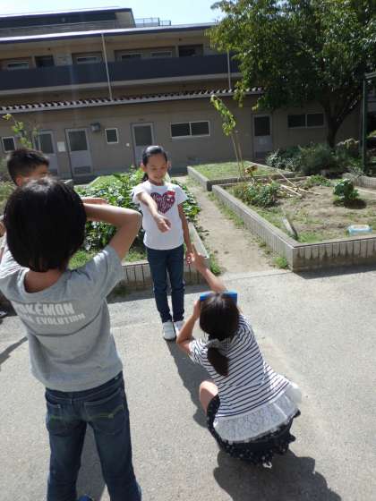 「かげの反対側に太陽が見えるよ!」「太陽が黄緑色に見えるー!」と,子どもたちからは感動の声があがっていました。
