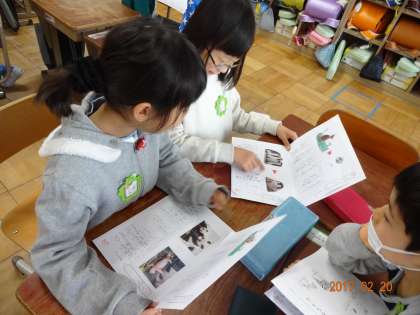 「どうぶつの赤ちゃん」の学習が終わりました。この学習では,『どうぶつマスター』を目指して,図鑑で動物の赤ちゃんについて調べました。教科書に載っているライオンやしまうま,カンガルーと比べながら読み,気付いた違いを話し合いました。