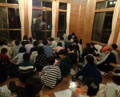 入浴の後は、星空の観察の予定でしたが、あいにくの曇り空だった為、振り返りを30分早めに行いました。