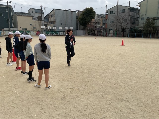 初回の練習は2年生担任の宮路先生にアップの仕方を教えてもらいました。