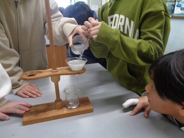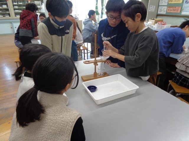 今日は、「ミョウバンを溶かした水溶液を冷やすと、ミョウバンを取り出せるだろうか」というめあてをもって学習を進めました。