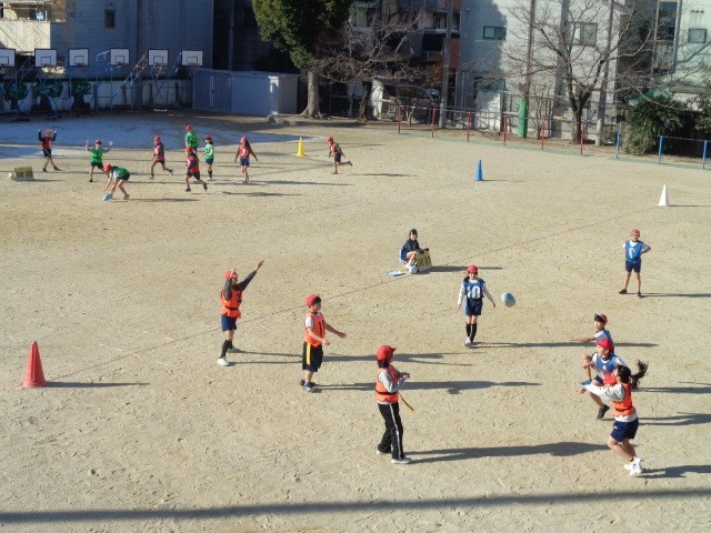 攻め方や守り方を工夫しながらいろいろなチームに挑戦して楽しむ。