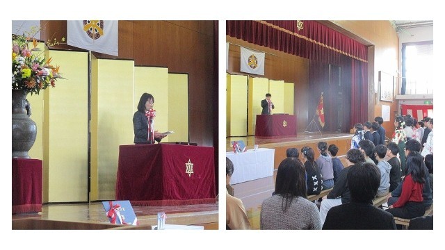 学校長の式辞では、「将来の夢をもつこと」「失敗をおそれずチャレンジすること」「人とのつながりを大切にすること」の3つを贈られました。