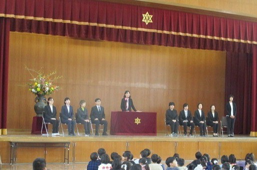 在校生代表の挨拶では、離任する教職員との思い出を一人ずつ伝えてくれました。