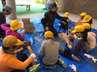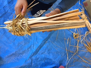 わらの扱いは簡単ではありませんが、結び目が増えるごと慣れて上手くなってきました。夜にこの地松を点火します。楽しみです。