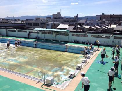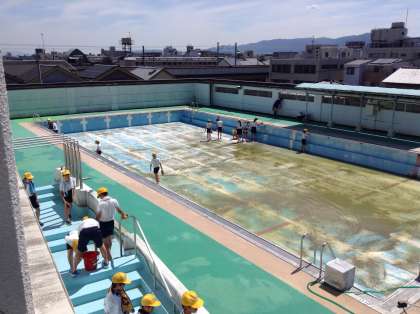 来週のプール開きに向けてプール清掃を行いました。暑い中でしたが,最高学年として,他の学年が安全に気持ちよく学習ができるように環境を整えることができました。