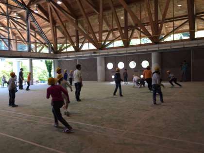 外遊びで汗を流した後はジュースタイム。その後またまたドッジボールで盛り上がりました。