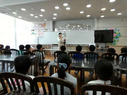 よくかんで食べるとどんないいことがあるのか,また,よくかまずに食べるとどんなよくないことがあるのかを,紙芝居を交えて学びました。