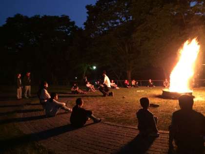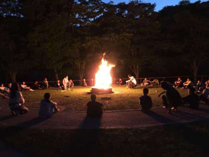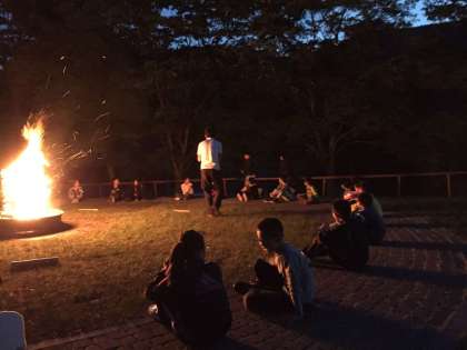 キャンプファイヤーが始まりました。火を囲んで素晴らしい思い出を作ります。