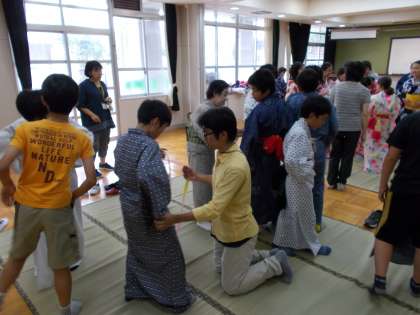 社協の方々に来ていただき浴衣の着方を教えていただきました。着付けだけでなく,浴衣の歴史も教えてくださり,たいへん貴重な体験となりました。