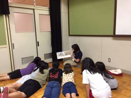 読み聞かせボランティアのヨムヨムさんが来てくださり,絵本の読み聞かせをしていただきました。人食い鬼なんてこわいなあ,眠れなくなったらどうしよう,とドキドキしながら食い入るように聞き入っていました。夜ヨムの後,9時に就寝,明朝7:30起床の予定です。