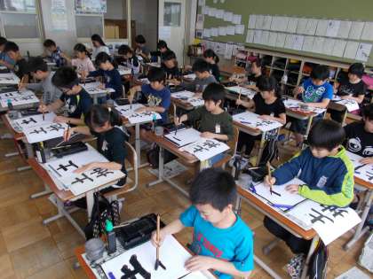 書写で,「へん」と「つくり」の幅や「土」の点画の形の変化に気を付けて字形を整えて書くことができるように学習しました。集中して取り組むことができました。