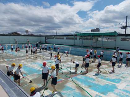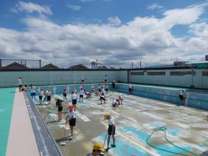 全校のみんなが気持ちよく水泳学習ができるようにプール掃除を行いました。一人ひとりが学校のために一生懸命働き,その中に喜びや楽しみを感じることができていたと思います。