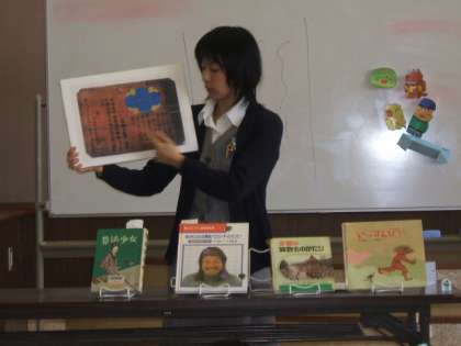 平安時代が舞台の「いっすんぼうし」の後は,歴史の流れともからめて,江戸時代が舞台の「算法少女」,現代の「かえってきた名探偵」の内容をお話しいただきながら,いろいろな角度から算数をとらえ,私たちの生活と算数のつながりについても考えました。その他に,「京都の算数ものがたり」,「たのしい算数教室」,「算数おもしろ事典」の合計6冊の本を,パネルやクイズなどを用いながら紹介していただきました。