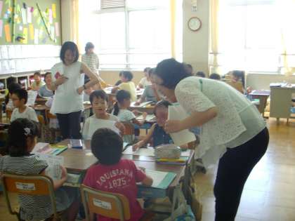朱二校は今年度から,国の教育課程の研究指定を受けて外国語活動の授業研究をしています。その一環として昨日,文科省から視察訪問がありました。全校で英語の授業に取り組みました。英語を使ってお互いの気持ちや考えを伝え合ったり,相手の話を聞いたりする活動を通して,自分も相手も大切にし,お互いの思いや考えを伝え合おうとする朱二っ子を育てていきたいと考えています。自分の誕生日が有名人と一緒とわかって驚いた5年生,バレーボールでよく知ってるオーバーハンドパス,アンダーハンドパスが実は英語のoverや underにつながっていたことがわかり,なるほどと納得の表情を浮かべた4年生。「今日は今までの外国語活動の時間の中で一番がんばったと思う」と振り返りを発表した3年生。皆の頑張りが伺えた1日でした。