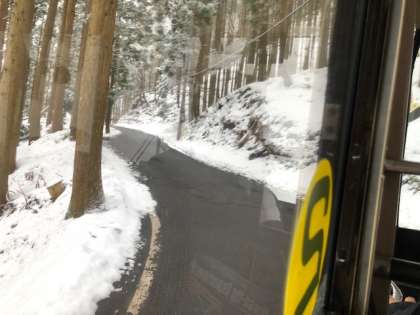 8:35に集合して出発式をしました。4日間、みなで協力して元気にがんばってきます。9月の台風のつめあとが残っています。山の木々が倒れていて、台風の強さを物語っていました。花背に近づくにつれ、雪景色になり、わくわく。