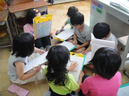 町探検に向けて,インタビューする内容をグループごとに相談しています。「働いていてうれしいときはどんなときですか?」「病院では,どんな人が働いているのですか?」など,働く人やその様子にとても興味があるようでした。