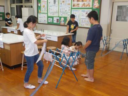 6年生は家庭科の授業で靴下を手洗いしました。