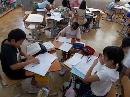 国語と総合の学習では,それぞれのグループで課題を設定し調べたことを分類・整理をしています。障害のある方々の生活やスポーツについて調べています。まとめたことは3年生や保護者の方々に向けて発信をする予定です。グループワークが活発に進んでいます。