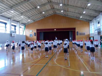 先週から運動会の練習が始まりました。1,2年生は,ダンスの練習をがんばっています。まだ数回しか練習していませんが、もうすっかり覚えてとっても楽しそうに踊っている人がたくさんいます。
