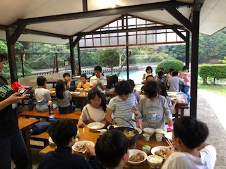 「自分たちで作るごはん、最高やなあ」「自然の中で食べるのがおいしいよね」「お母さんが作るのよりおいしい」(えっ?)