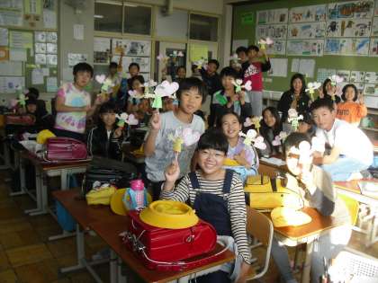 「失礼します。」可愛い声が聞こえて,教室にお客さまが。リボンがかかった大きな袋を持ってきてくれました。「運動会の時は,イスを運んでくれてありがとう。組体操とかかっこよかったです。」なんてうれしいプレゼント!一人ひとつ作ってくれました。ありがとう!これからも,お兄さんお姉さんらしくがんばるね!!