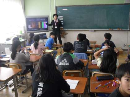 先日のハロウィンの話もとても楽しく聞け「ぼくも仮装してみたい!」「家の飾りつけはすごくお金がかかりそう。」など,興味津々に聞いていました。