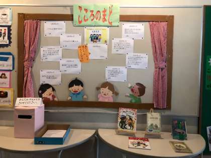 「心の窓」の掲示を見た子たちがピンクのポストに自分の考えを入れてくれています。