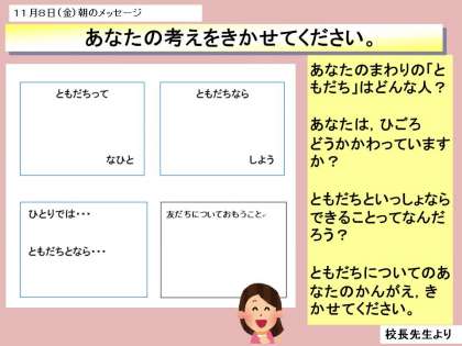 友だちってどんな人?〜友だちについて考えた(1)11月朝会〜