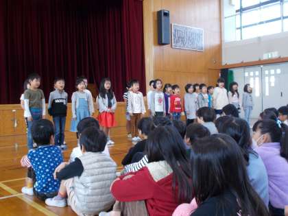 11月のことばの広場は,1年生の発表でした。全員で「くじらぐも」を発表しました。大きな拍手や上級生からの感想をもらうことができてうれしかったです。「緊張したけど、上手にできた。」と満足そうに話していました。