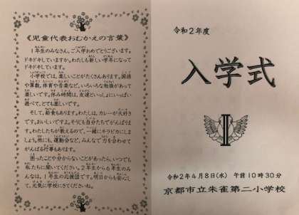 今年度の入学式のしおりには,新6年生児童代表「おむかえの言葉」を掲載しました。
