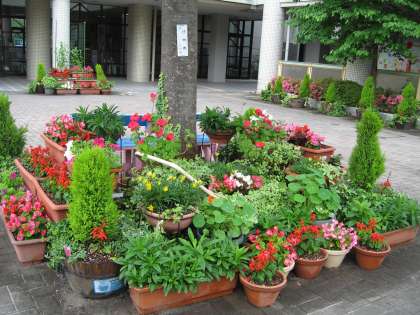 地域の方や保護者の皆様にも,玄関の花も好評です。