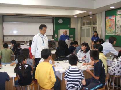 今日は,理科の「ものの燃え方」の学習の発展として,大阪ガスから来ていただき,燃焼の実験を行いました。