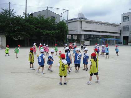体育でころがしドッジボールの学習をしてきました。ボール遊びが大好きな一年生は,どの子も喜んで積極的に参加できました。始めてころがしドッジボールをヤった子もルールーを覚えチームで協力してゲームをしていました。お互いに声をかけあい得点につながる逃げ方や転がし方も子ども達自身が考えつき,みんなで頑張っていました。
