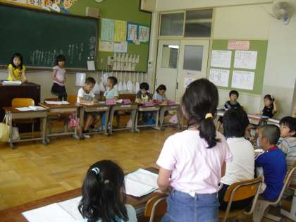 どの子も手を挙げ、意見を堂々と話しあっています。