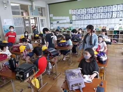 6年生では毎日,終わりの会でキラピカ掃除の反省をしています。各掃除場所の掃除長さんが頑張れたことや改善点などを報告します。自分の掃除場所だけでなく他の掃除場所の様子も共有し学年全体でキラピカ掃除に取り組んでいます。