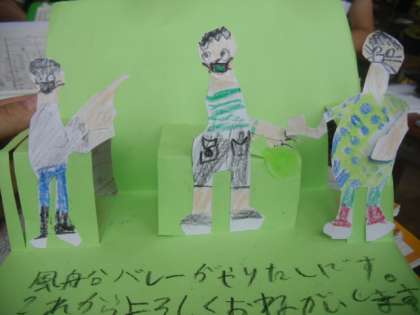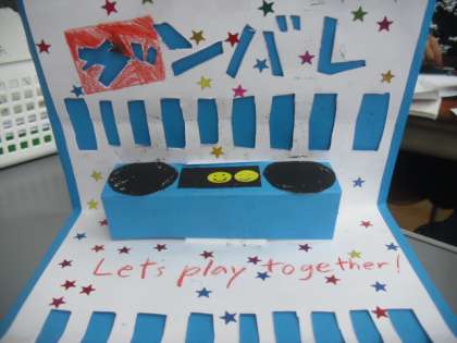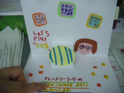 いつもみんなのリーダーとしてがんばってくれている6年生に,「幸せを運ぶカード」を作りました。メッセージは「Let's play!」です。これから,フレンドリー活動でもお世話になる6年生とこんな遊びがしたい!という思いを伝えました。うまく英語で伝えられたかな?This is for you.どうぞよろしくね。