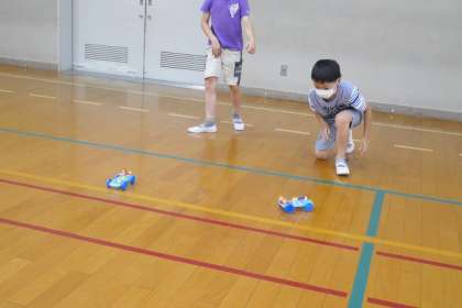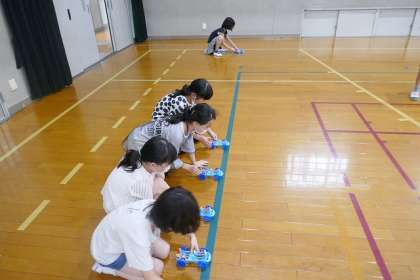 電池のはたらきの学習が終わったので,実験で使ったキットでプロペラカーやモーターカーを作り,走らせました。学習した直列つなぎや並列つなぎで電池をつなげました。友達と競争させる子がいるなど,楽しみながら活動をしました。