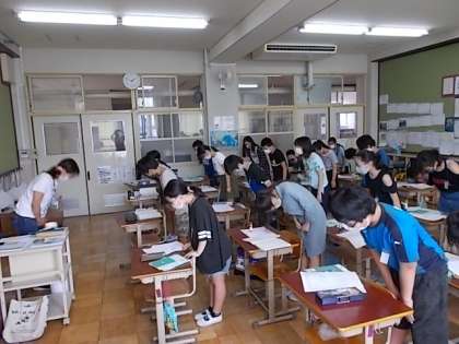 授業の始まりと終わりの挨拶を大切にしています。6月の友達の日にも学習したように,礼とは相手を思いやる気持ちです。一緒に学習する友達や先生に真心を込めて挨拶をしています。