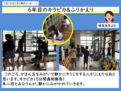 今の6年生は1年生からずっとキラピカ掃除を続けています。