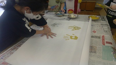 第一回のクラブ活動でどんなことをしたいか相談し,この日は手形アートに挑戦しました。