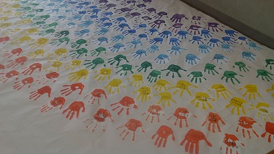 1年生は走る練習や並び方の練習だけでなく,応援の練習や手形飾りの作成など,いろいろな準備を続けています。