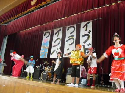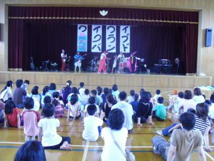7月2日に,PTA主催の『親子レクレーション』で,ワイワイクラブバンドの歌あそびコンサートがありました。