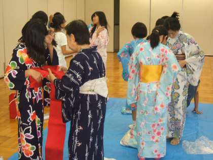 地域の社会福祉協議会の皆さんにご協力いただき,浴衣着付け体験をしました。
